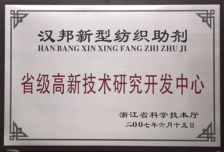 漢邦十分注重技術創新,與浙江大學、浙江工業大學、陜西科技大學等大專院校建立了長期合作。公司先后獲得浙江省科技型中小企業、浙江省創新型中小企業、浙江省專精特新中小企業、桐鄉市“壯腰工程”培育企業等稱號,現擁有發明專利10余項,實用新型專利30余項,制定標準7項,研發中心被認定為省級企業研究院。