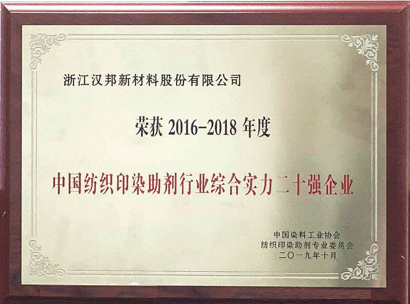 榮獲中國紡織印染助劑行業綜合實力二十強,獲評浙江省創新型中小企業、桐鄉市十佳環保企業等多項榮譽。